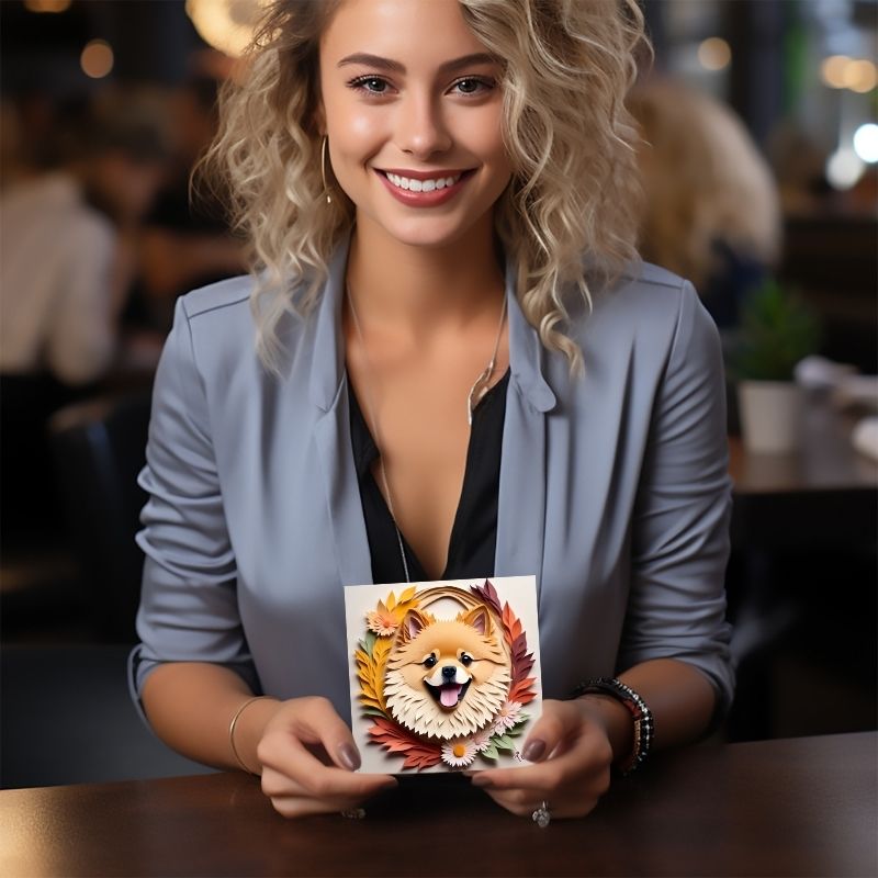 Bring the playful spirit of the Pomeranian into your home with this faux papercut-style canvas wrap. Designed with vibrant autumn hues, floral accents, and intricate layering, this artwork captures the cheerful personality and fluffy charm of the breed in a way that feels both modern and timeless. The lifelike depth and texture make it a stunning statement piece for dog lovers who want their décor to reflect the joy of their four-legged companion.