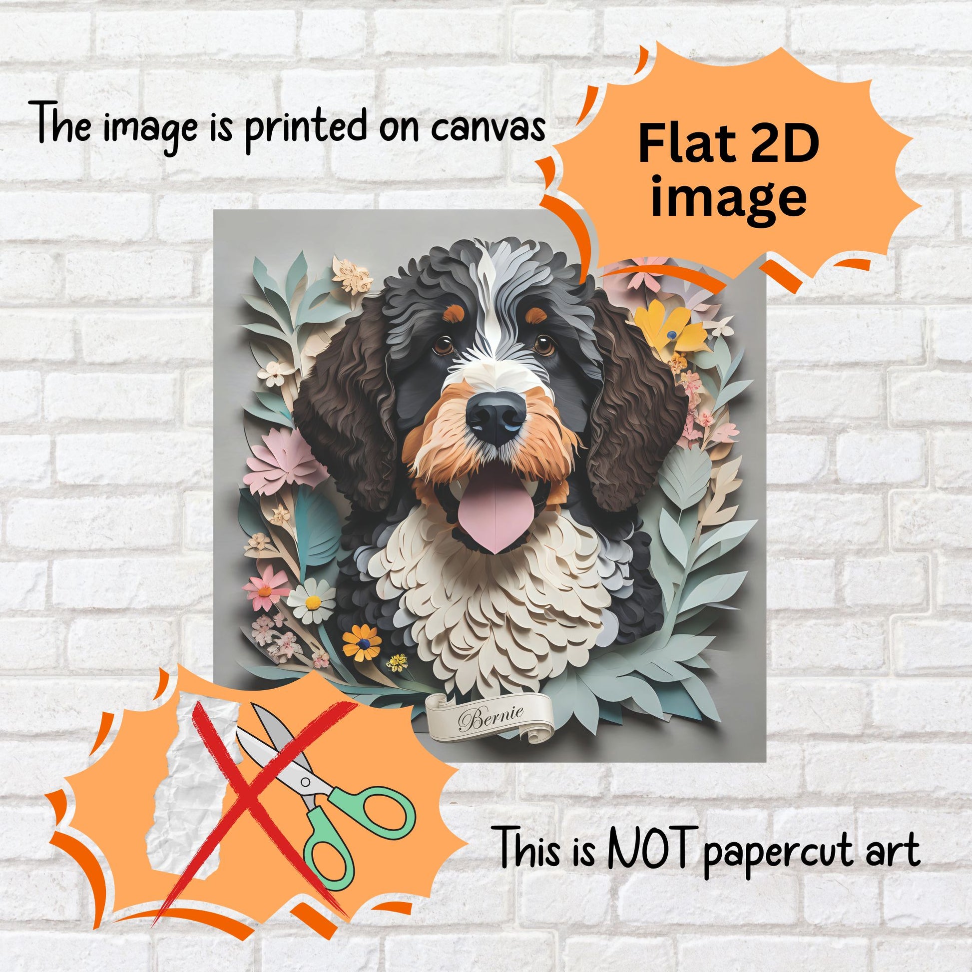 Bernedoodle 3D Illusion Wall Art - Vintage Papercut Imitation Canvas Print