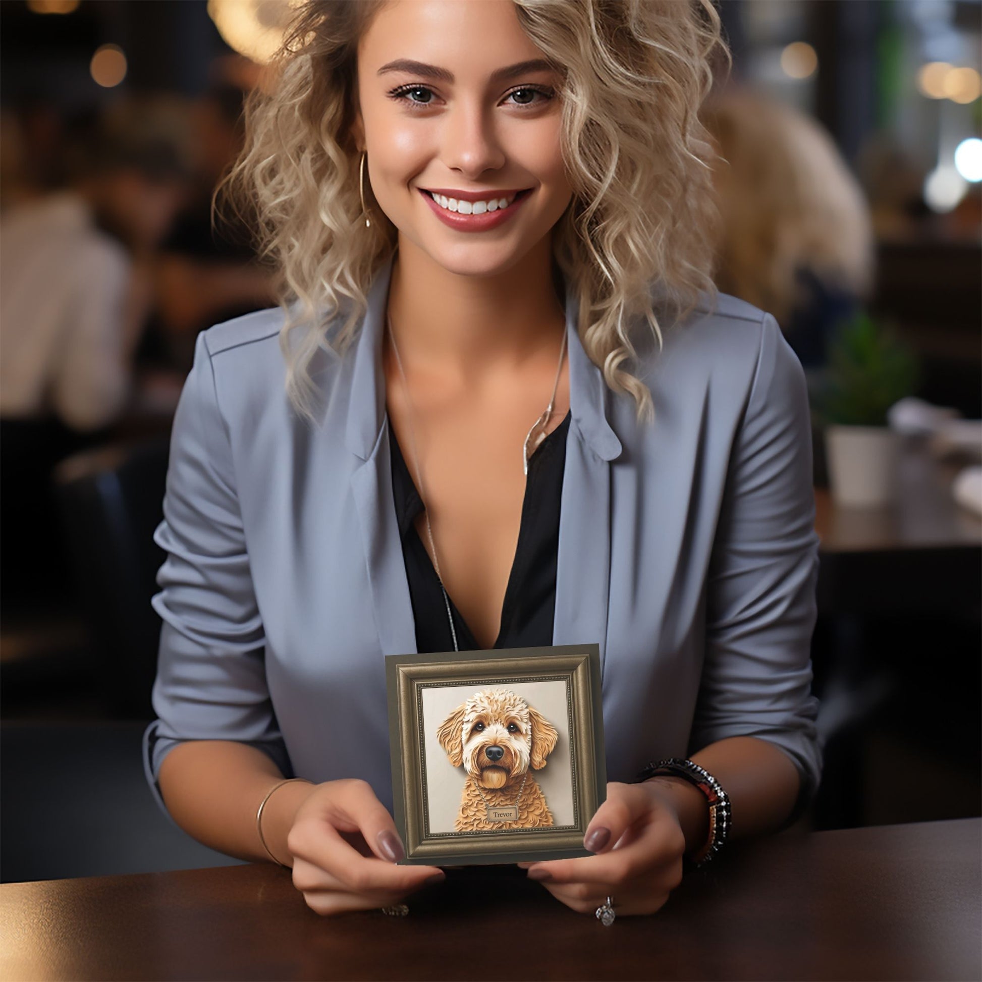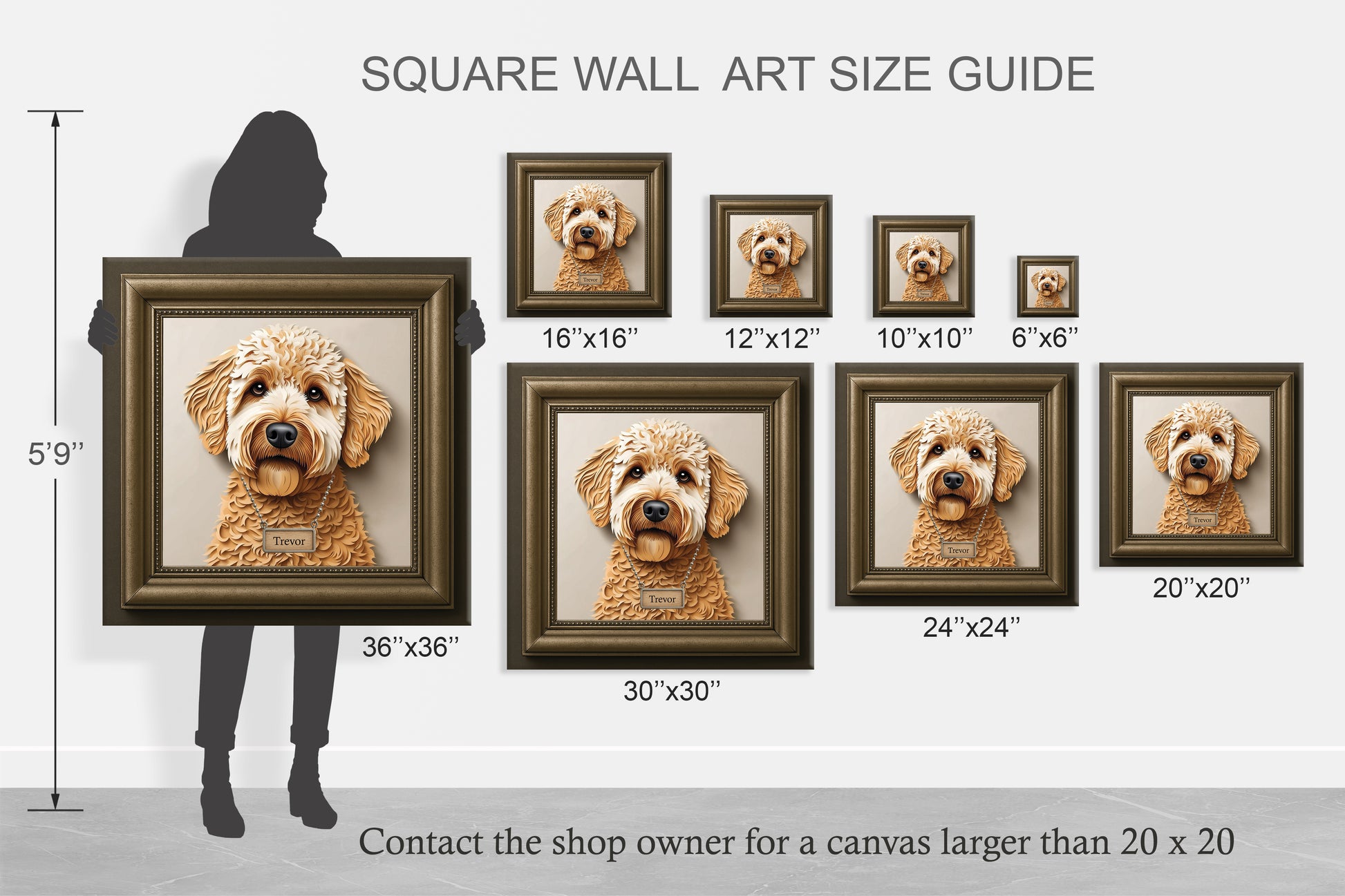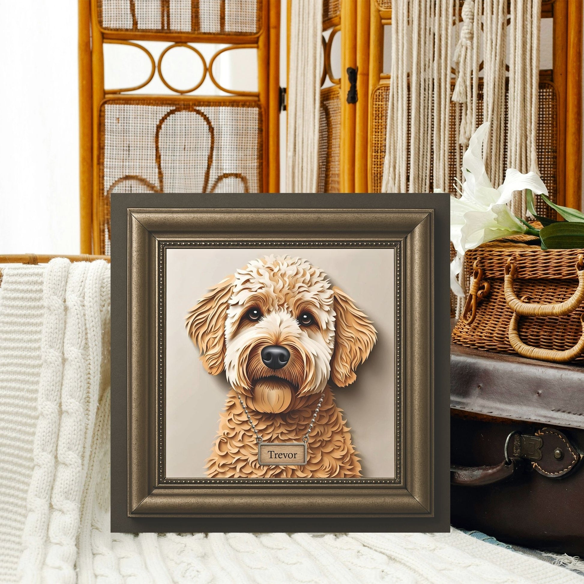 Celebrate the love you share with your Golden Doodle through this stunning 3D illusion portrait. Whether you're looking for heartfelt memorial art or a unique gift for a dog lover, this piece blends artistic elegance with emotional warmth. 🐕✨